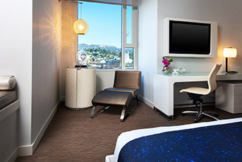 Enjoy the iconic views from our Fabulous Room. Gaze out at the Hollywood hills or the city views of Los Angeles from our higher floor rooms.