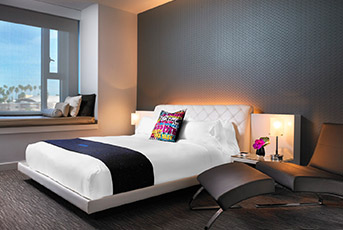 Set your sights on something a little more spectacular. In our Spectacular Room, your window views just got even better. Peer out your picture window over the Hollywood Walk of Fame and Station Hollywood from the comfort of your large window seat.